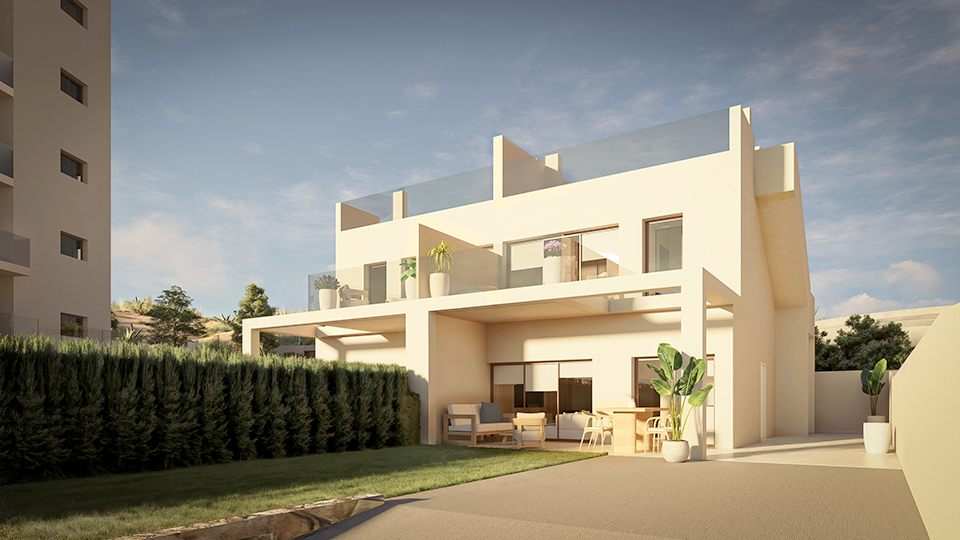 Within this natural enclave, we also have this cluster of 12 semi-detached 3-bedroomed villas with generous outdoor garden areas and conservatories that combine modern design, and airiness all in perfect harmony with the local area. The understated design, aimed at a comfortable life, creates a welcoming, personal and calm atmosphere. With a communal swimming pool and open areas, here you have the opportunity to share with others who value the same things as you: tranquility, simple beauty and the joy of truly living and at a slower pace.